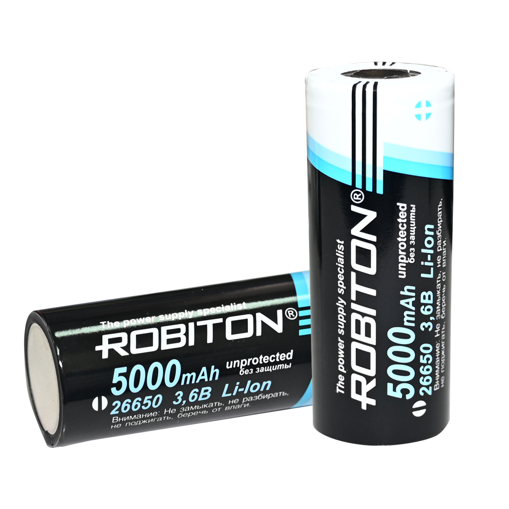 ROBITON 26650-5000 без защиты с плоским контактом PK1(в упаковке 1шт)