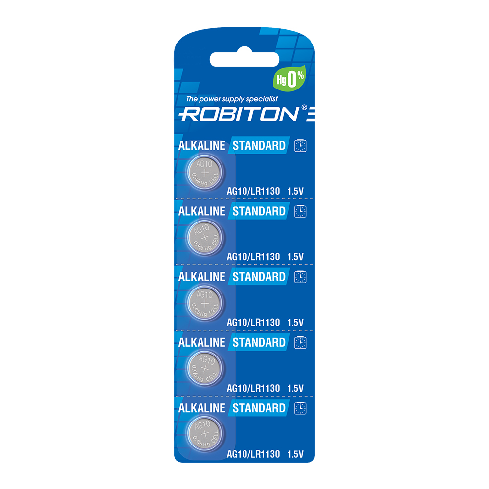 ROBITON STANDARD R-AG10-0-BL5 (0% Hg) AG10 LR1130 389 189 LR54 BL5(блистер 5шт)