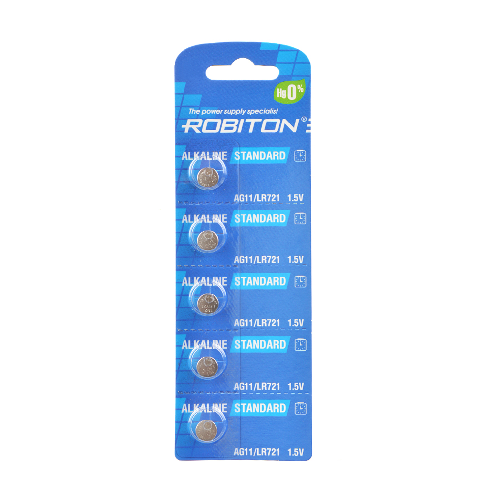 ROBITON STANDARD R-AG11-0-BL5 (0% Hg) AG11 LR721 361 LR58 BL5(блистер 5шт)