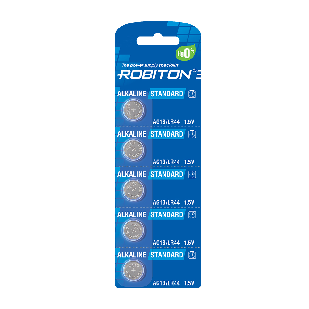 ROBITON STANDARD R-AG13-0-BL5 (0% Hg) AG13 LR44 357 A76 МЦ-1154 BL5(блистер 5шт)