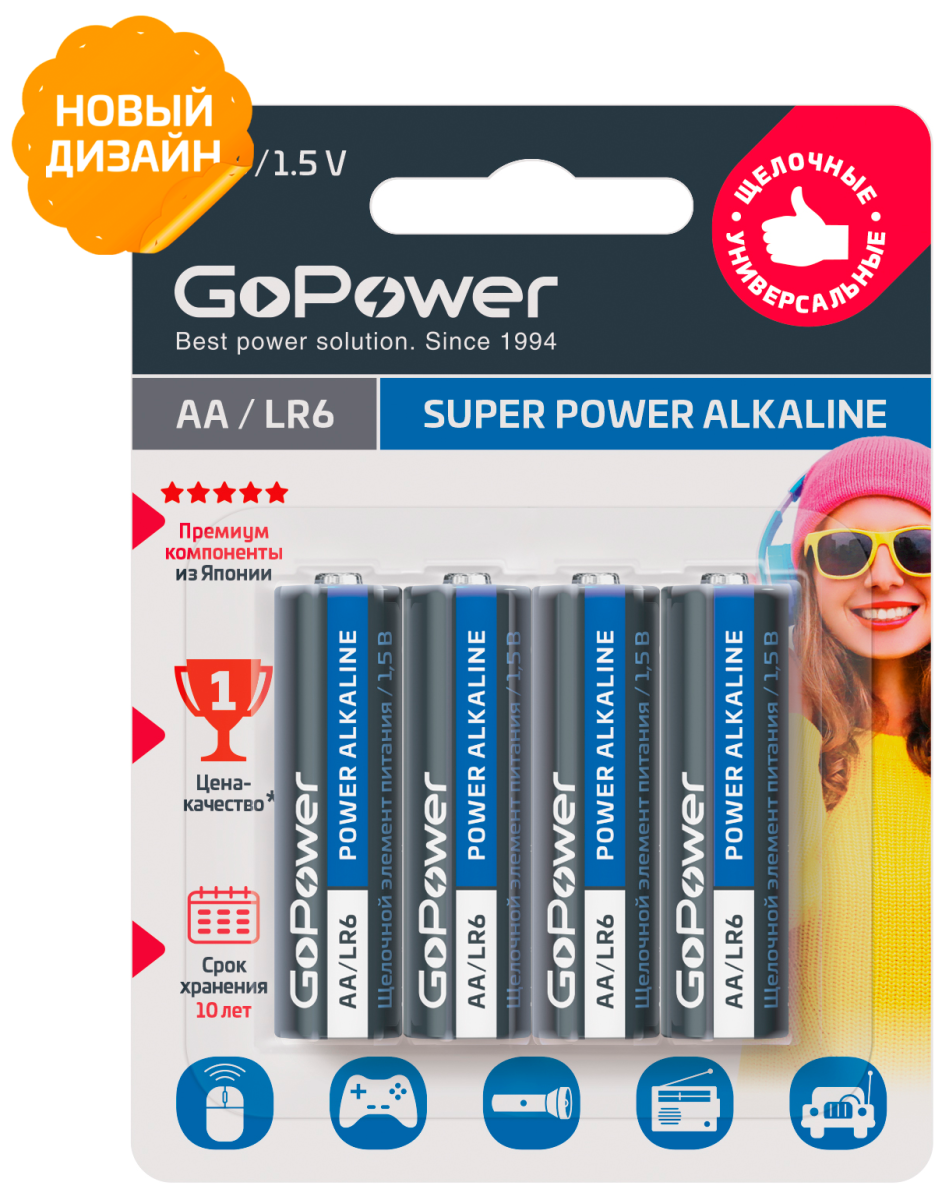 Батарейка GoPower LR6 AA BL4 Alkaline 1.5V (4/48/576)(блистер 4шт)