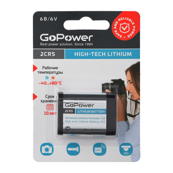 Батарейка GoPower 2CR5 BL1 Lithium 6V (6203) (1/14/168) (блистер 1шт)