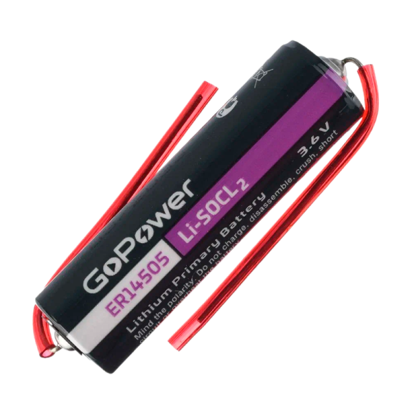 Батарейка GoPower ER14505 PC1 Li-SOCl2 3.6V 2600mAh с выводами (1/10/500)