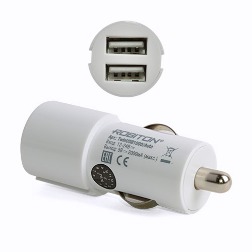 ROBITON TwinUSB1000/Auto 2100мА с 2 USB входом (12-24V) BL1(блистер 1шт)