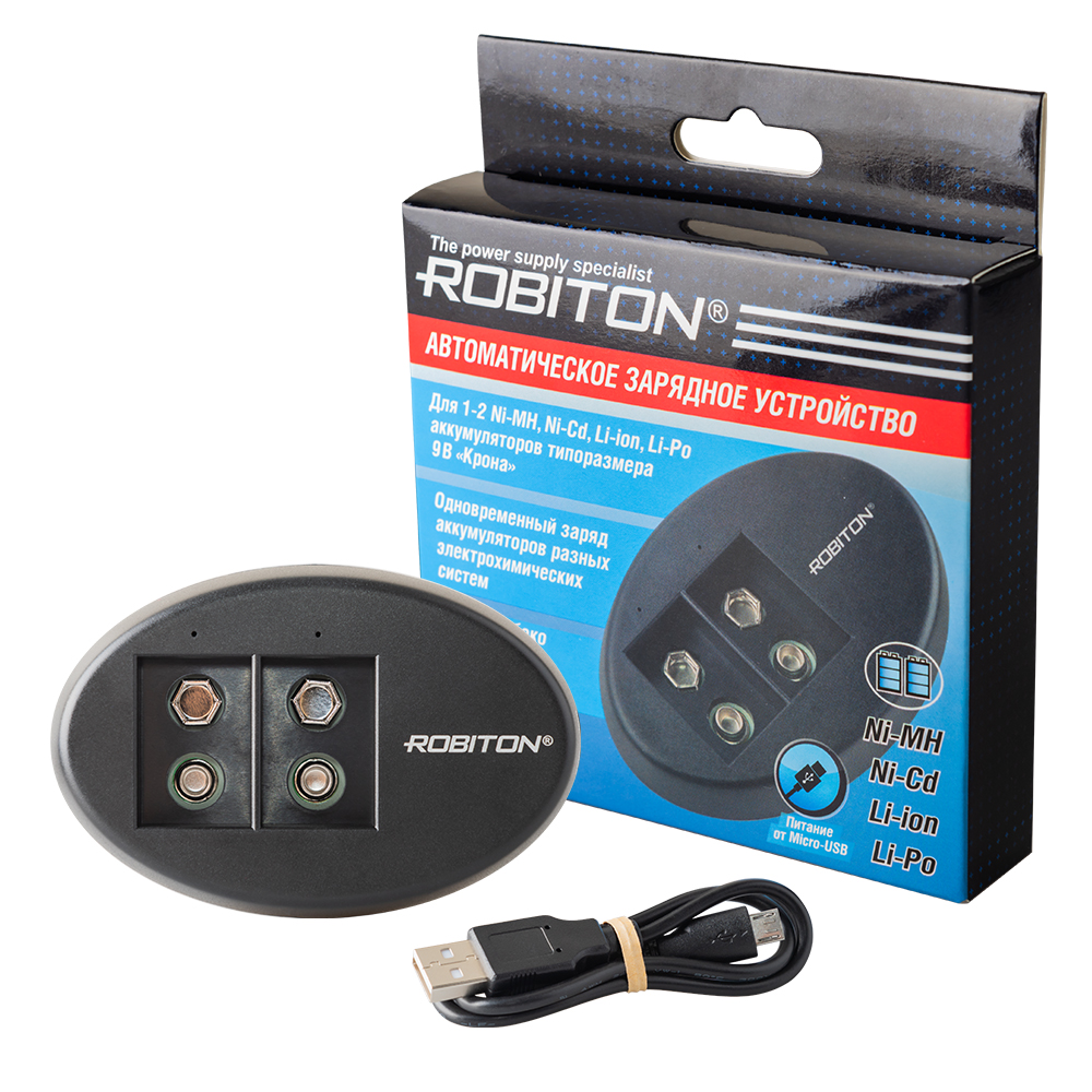 1-2 аккумулятора Li-ion с напряжением 8,4 В типоразмера «Крона»