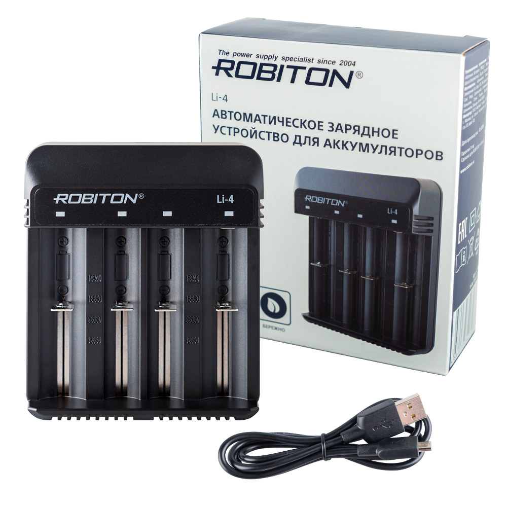 1-4 аккумулятора Li-ion с напряжением 3,7 В типоразмеров 10440, 14500, 16340 (RCR123A), 17500, 17650, 17670, 18490, 18500, 18650, 20700, 21700, 22650