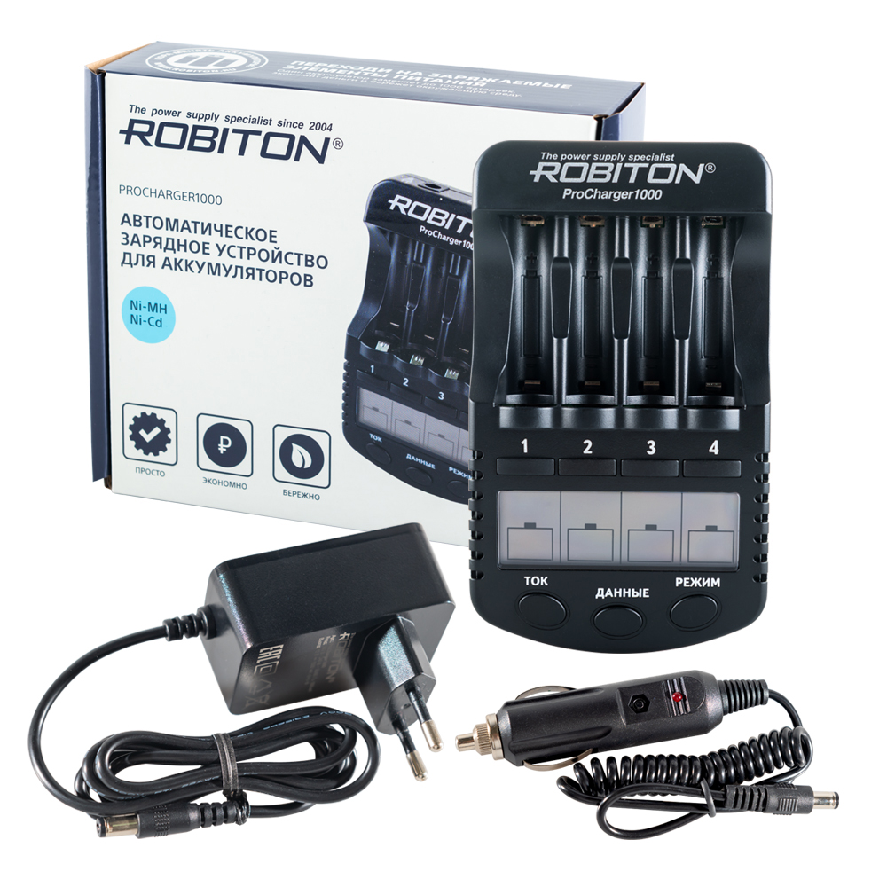 1 – 4 аккумулятора Ni-MH и Ni-Cd с напряжением 1,2 В типоразмера АА/HR6, ААА/HR03.