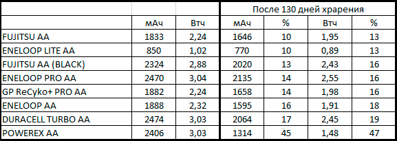 · У Li-ion аккумуляторных батареек в среднем до 5-6% в год. Самый низкий процент.